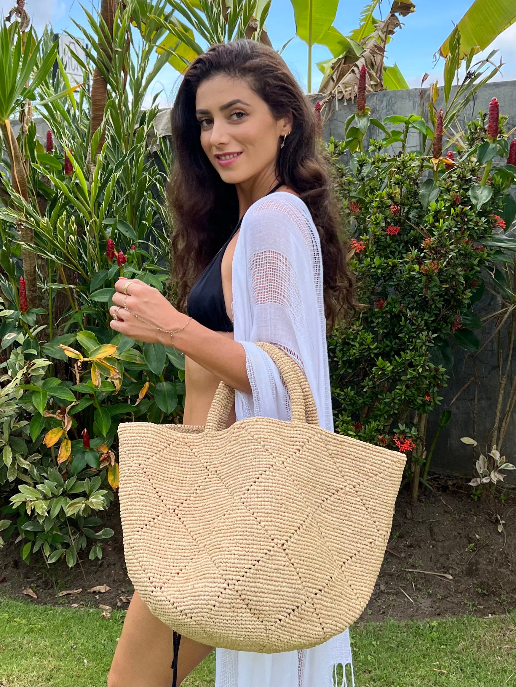 As raffia is a natural fibre, overtime, these edges may come loose causing strands to poke out and look a little “messy”.